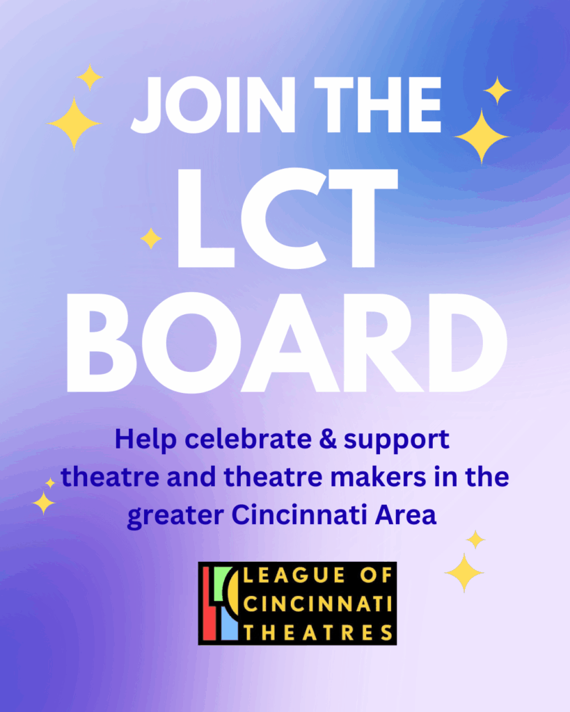 Whether you worked in it, studied it, or “it’s complicated”–help celebrate & support the world class theatre and theatre makers in the greater Cincinnati Area by joining the LCT Board.
