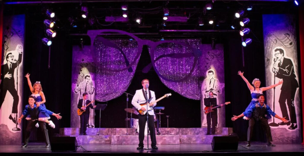 Buddy: The Buddy Holly Story covers the last few years of Buddy Holly’s short life. It begins in January 1956 as a country kid in Lubbock, Texas, and traces his path from early resistance to his sound, look, and creative control to chart-topping success as a rock and roll star. The story ends with the tragic February 1959 plane crash that has become known as “The Day the Music Died,” bringing an abrupt end to the lives of Buddy Holly and two fellow rising musicians. His untimely death is part of the arc, but the show’s real strength is that, through a spirited celebration of Buddy Holly’s music, you leave the theatre remembering the joy of his songs rather than the sadness of how his story came to an end.