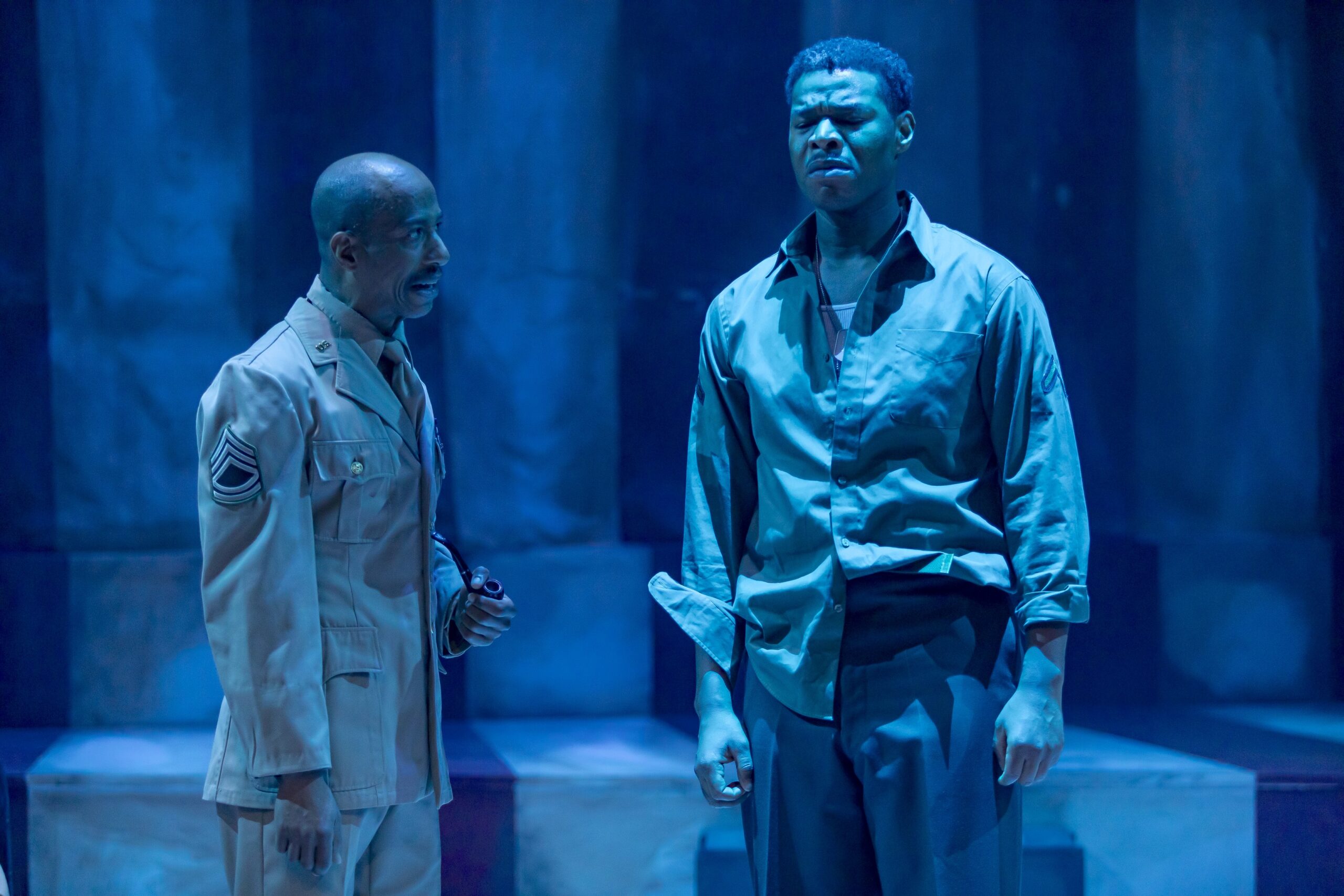 The acclaimed Captain Davenport, trusted by the Army to oversee the case within a tight three-day time limit, must contend with the expected prejudices and biases of the white Captain Charles Taylor (Brent Vimtrup), as well as a pair of MPs and potential suspects: Captain Wilcox (Cary Davenport) and Lieutenant Byrd (Patrick Earl Phillips). Taylor attempts to foil Captain Davenport at every opportunity. Despite their equal ranking, he is genuinely taken aback by his racism. Captain Davenport’s strength lies in elevating himself above the distraction and getting to the core of the mystery surrounding the group of soldiers who were under the Sergeant’s command.
