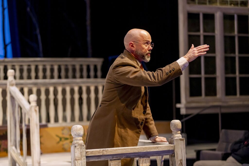Despite being written for 1882 Norway audiences, and being set in roughly that time and place, the dialogue is timely and the performances leave no doubt to the character’s strong personalities and beliefs. Dr. Thomas Stockmann is played skillfully by the talented Brent Vimtrup. He shows the wide array of Stockmann’s emotions from the cheerful and silly to the sorrow and the rage. Also worth noting is Barry Mulholland as Aslaksen the older more moderate representative of the tradesmen and the local printer who while initially is on Dr. Stockmann’s side. He’s a fascinating character and his actor is a delight to watch.