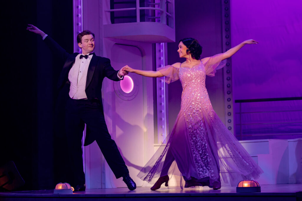 The plot follows Billy Crocker (Josh Devine) as he stows away on the SS American to pursue his whirlwind love with Hope Harcourt (Monique Churchill). Little does Crocker know, Harcourt is already engaged to Lord Evelyn Oakleigh (Joey Baciocco) through the meddling antics of her mother, Mrs. Evangeline Harcourt (Diane Lala). Crocker receives help from many zany characters throughout his time on the SS American including former evangelist turned nightclub singer, Reno Sweeney (Indya Lincicome). Sweeney, who has her own feelings towards Crocker, is determined to help him win Harcourt’s heart. Further help is found in unlikely friends Moonface Martin (Dominic Carroll), public enemy number 13 and his confidant, Erma (Abigayle Kate Gatton Stokes). The antics escalate as Crocker employs various disguises and schemes to break up Harcourt’s engagement, leading to a series of humorous misunderstandings and romantic entanglements.