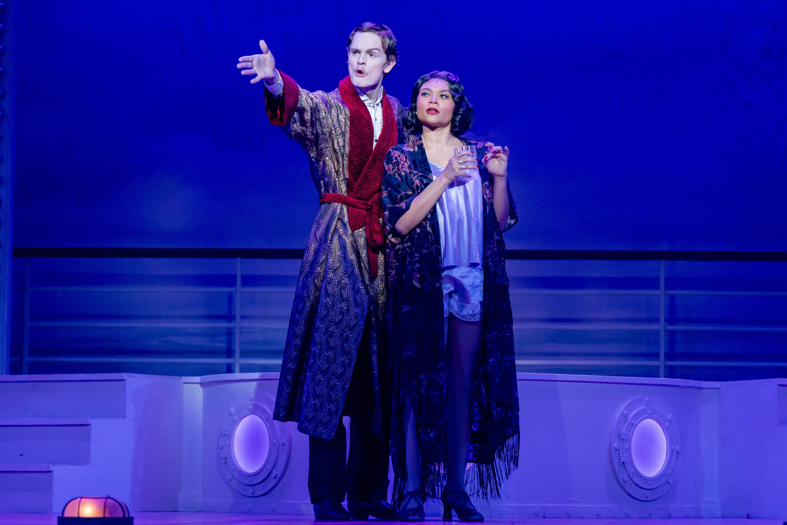 Other stand out comedic performances are by Gatton Stokes (Erma) and Carroll (Moonface Martin). They find hilarious moments throughout as they find their way from stowaways to VIP guests on the boat. Gatton Stokes’ number, Buddy Beware gives one of the best vocal performance of this stellar production. Erma’s typical “gun moll” accent mixed is with powerful vocal chops. Carroll gives a crowd-pleasing performance in his comedic number, Be Like the Bluebird.