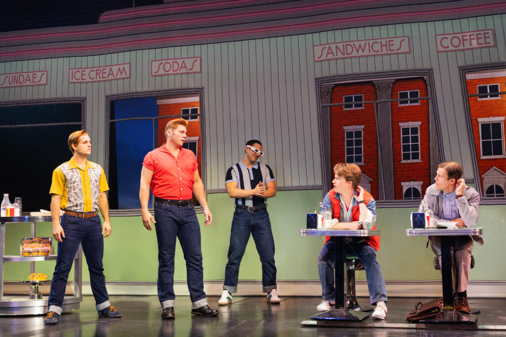 The music blends new material with familiar favorites—Huey Lewis’s “The Power of Love” and Chuck Berry’s “Johnny B. Goode”—plus fresh numbers like “It’s Only a Matter of Time” and “Future Boy.” The pit band delivers them with vibrant, era-spanning flair.