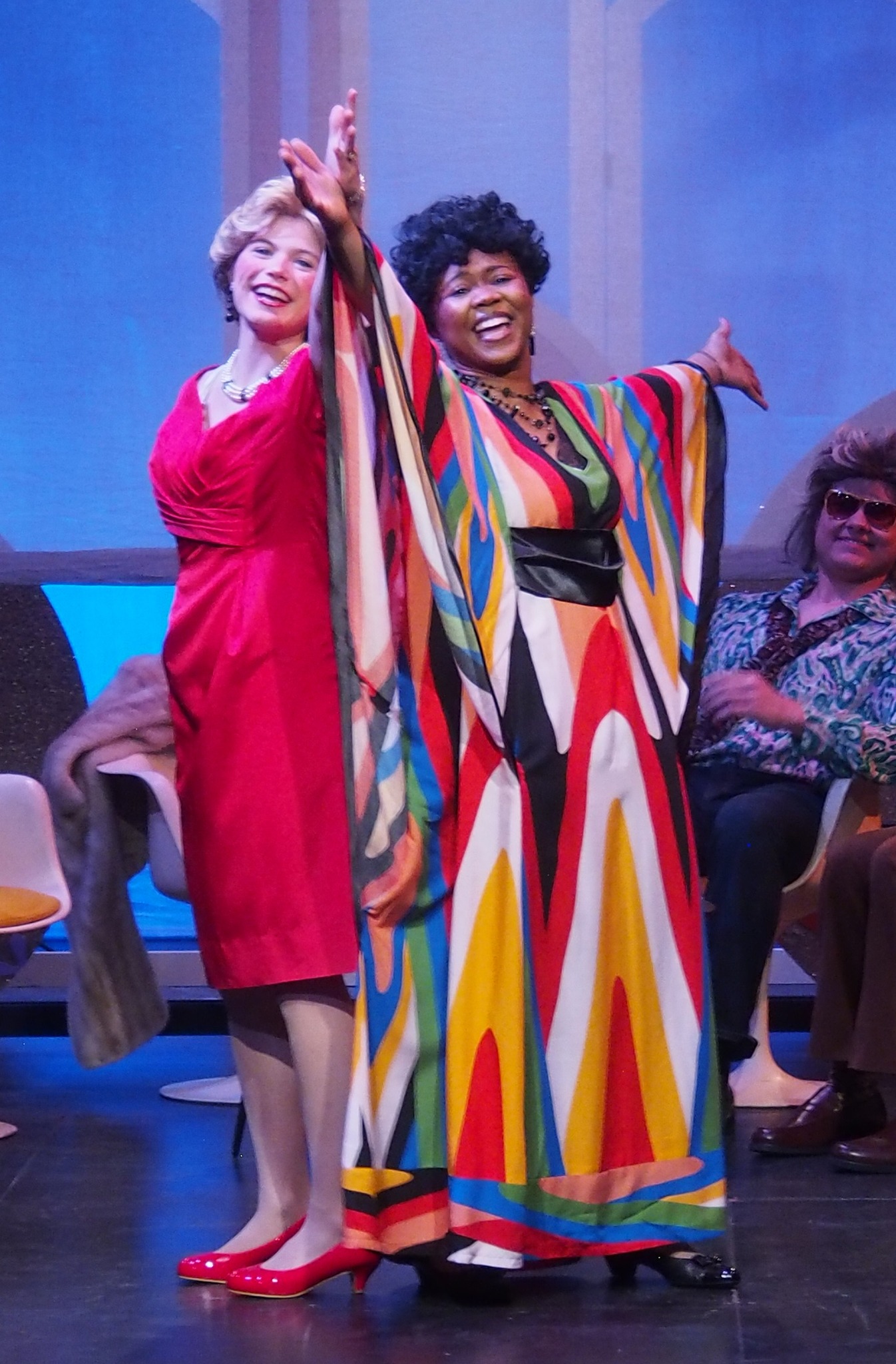 The men in the story include Leroy, a smooth studio assistant (Benjamin Jones) working for a foreign director (Parker Hamrick), as well as a studio executive (Teddy Rahill). Each fulfills their role nicely in the first act, as well as taking on other roles in the second. Rahill leads the talk show, with Hamrick as a guest, while Jones leads a panel.