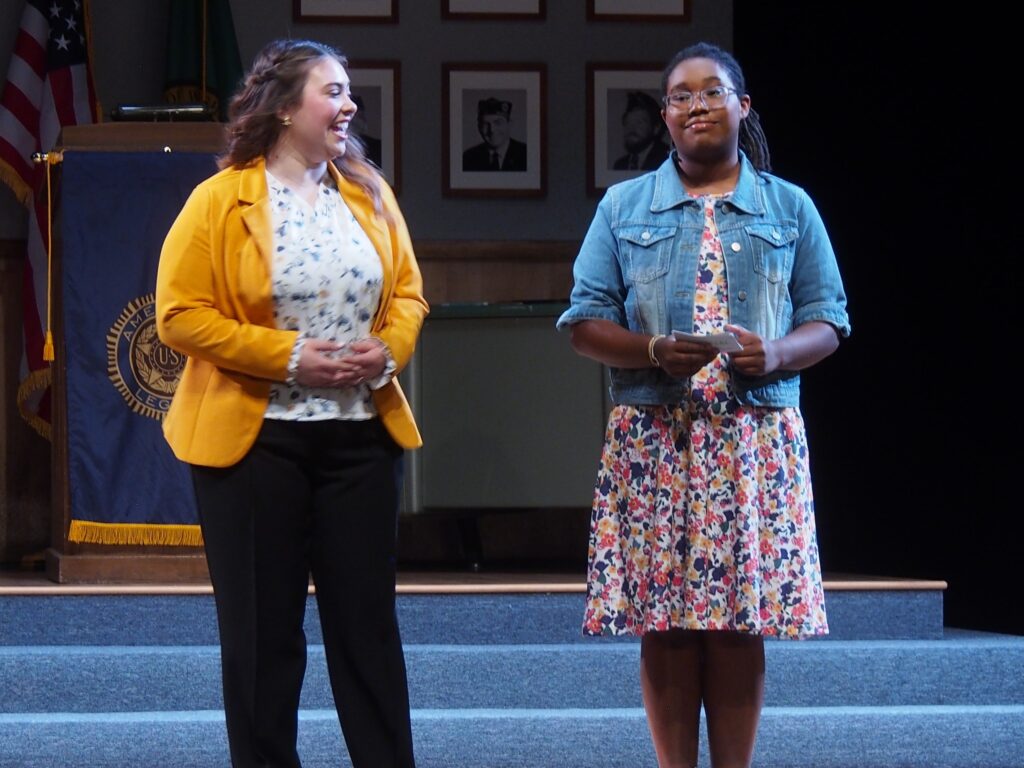Sara Rose Detwiler and Danielle Todd-Harris in What the Constitution Means to Me at Miami University Theatre.