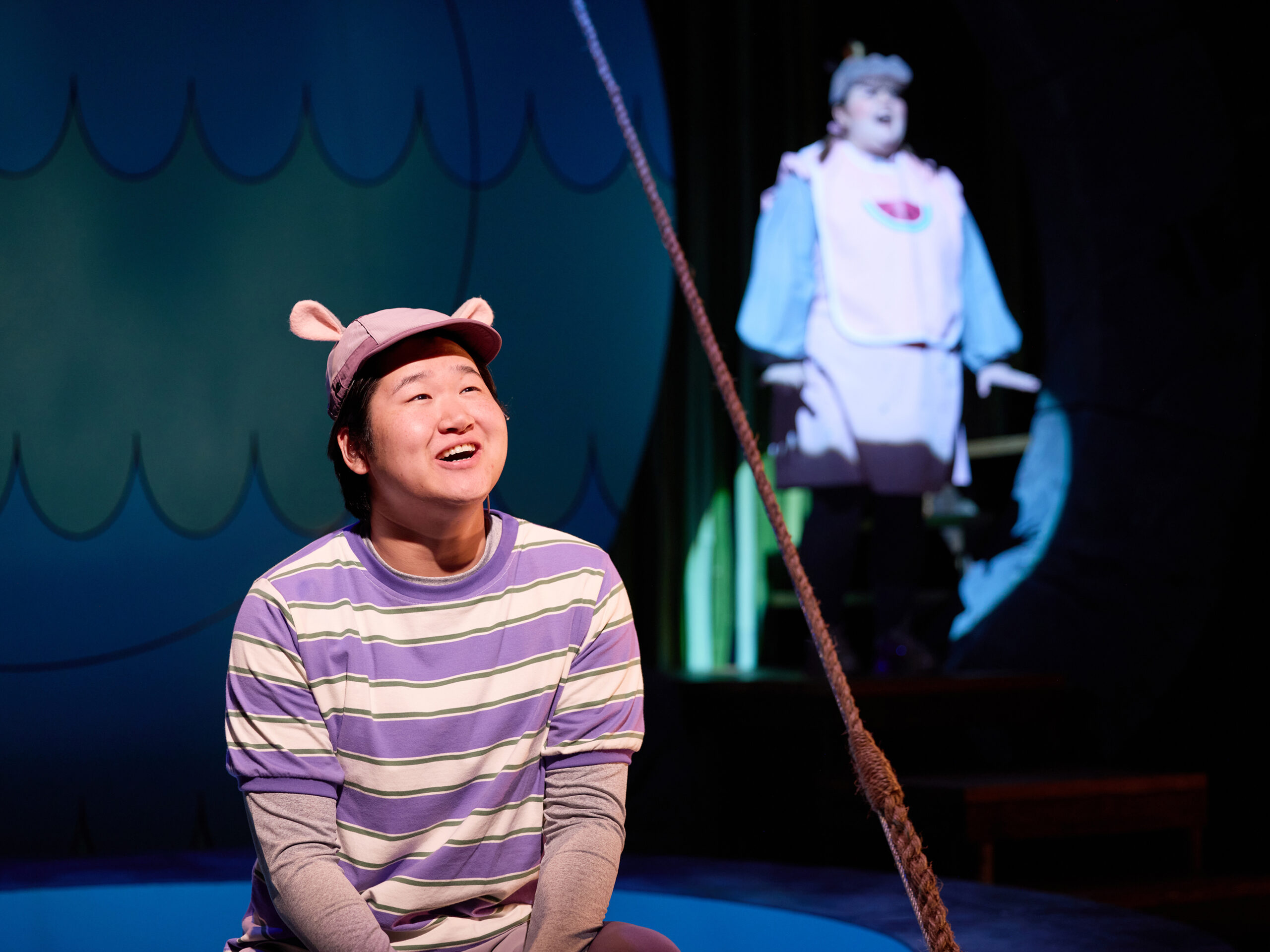 ETC’s holiday production brings some of the best and brightest performers in the region to the stage each year and this world premiere is no different. This year we see a new face take the spotlight on the ETC stage. Recent Baldwin Wallace graduate, Troian Butler takes on the title role captivating audiences from his first splash in the pool. Butler brings a wide- eyed wonder and playful optimism to the role, making Fritz feel relatable to audience members young and old. He brings moxie (and a bit of clumsiness) to the role that mimics the trials any young person may feel.