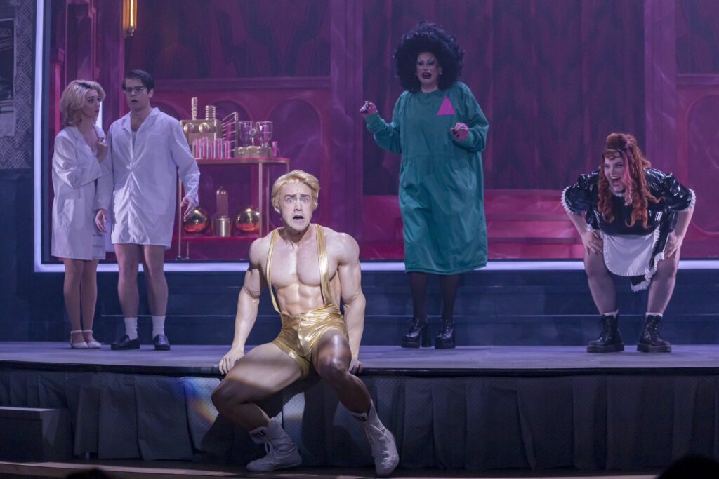 Eric Byrd, serving as both director and choreographer, balances Rocky Horror’s wild energy with carefully controlled spectacle. He’s pulled off something special: wild abandon without descending into chaos, precision without losing the electric rush. Tyler Gabbard’s scenic and video design impressed with bold, theatrical visuals. Projected backdrops felt integrated, not as gimmicks but as essential storytelling tools.