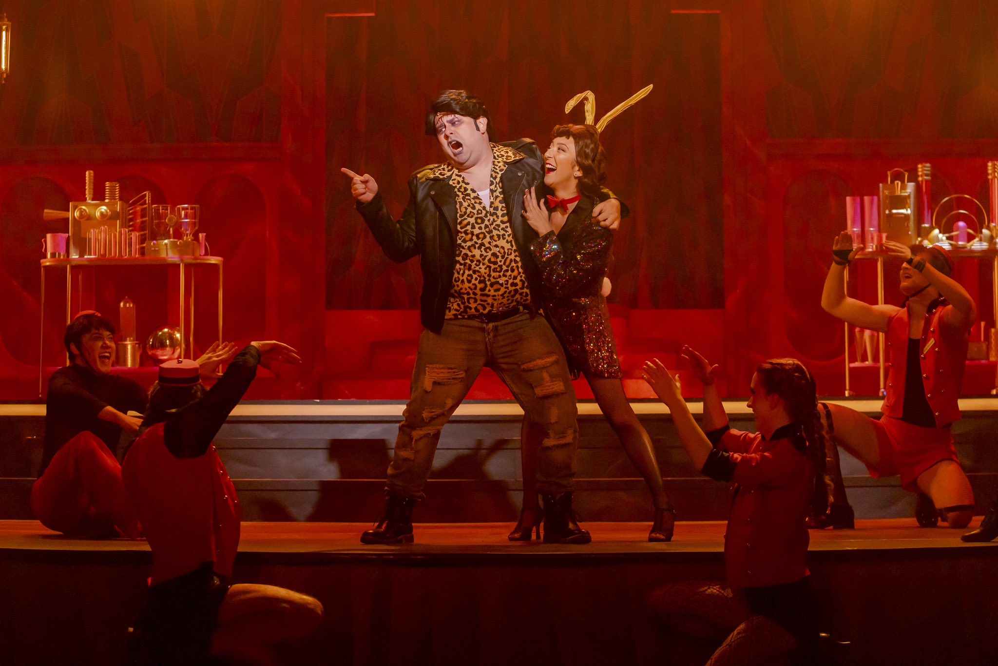 The show’s behind-the-scenes artistry manifested in every technical element, playing a key role in its cohesive and polished presentation. This included Julie Cowger’s lighting, Jeff Shearer’s costumes, Mia Catherine’s sound, Candace Leyland’s wigs, Michael Hamburg’s stage management, and Doug Stock’s technical direction. Hair and makeup were spot-on, expertly transforming actors into their glamorous alter egos. Props were both playful and effective, helping maintain the tone light, even when the story dipped into darker territory. Lighting shifted focus beautifully throughout the night, moving seamlessly from seductive neon to shadowy suspense.