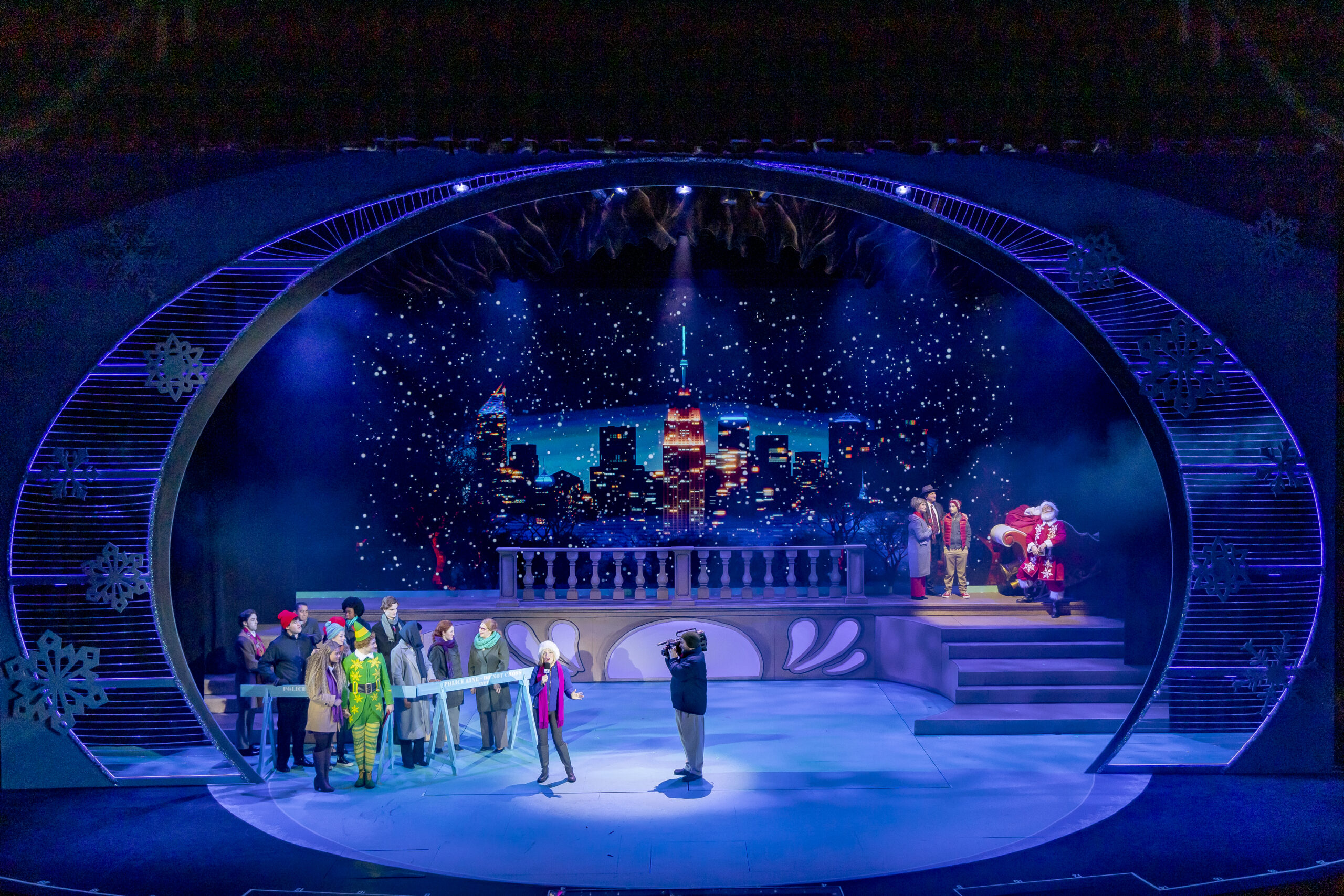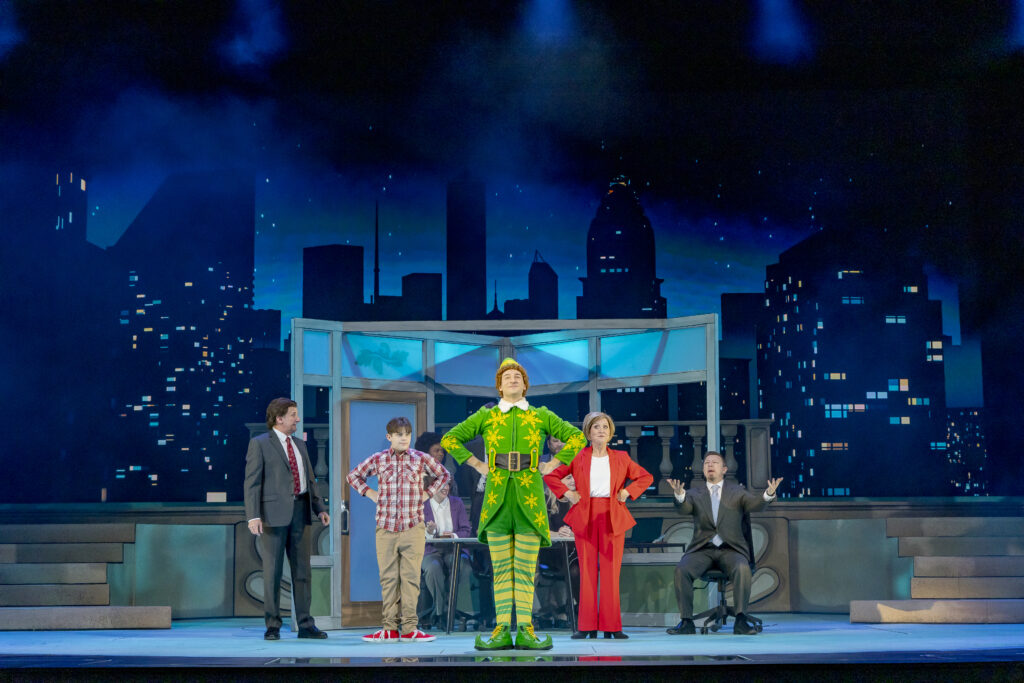 A. James Jones is a charmingly exuberant, physical Buddy — earnest and silly in equal measure — and he sells every big, goofy moment. Indya Linciome’s Jovie provides the perfect foil and romantic center, with a warm, clear voice that pairs nicely with Buddy’s exuberance. Ryan J. Poole’s Santa is a steady, comforting presence having all the kids in the theater cheering for him.